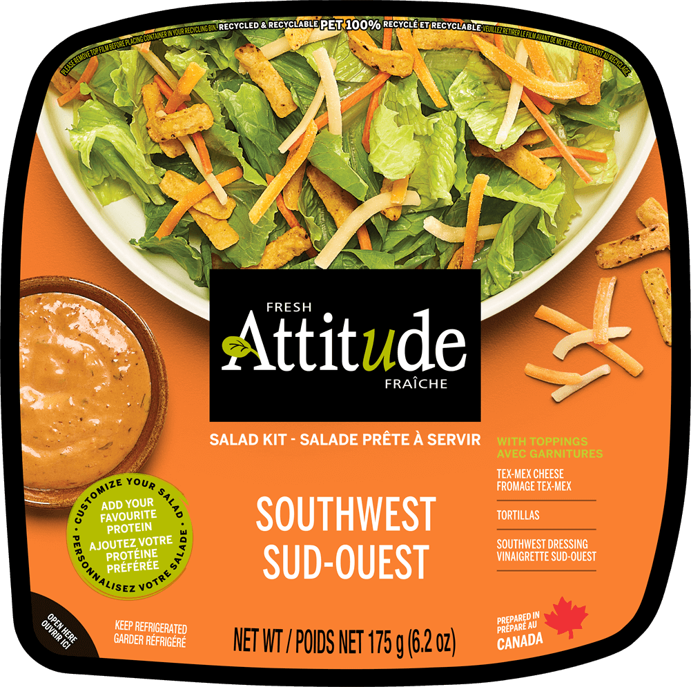 Nos salades prêtes-à-manger, combinant nos laitues fraîches à divers ingrédients, sont présentées dans un emballage conservant les garnitures dans des cavités étanches. Sans colorants, nos ensembles sont disponibles en format familial ou individuel. Un prêt-à-manger santé et pratique, à déguster à la maison ou sur le pouce.