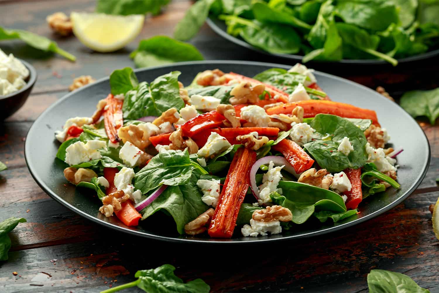 Dans un petit bol, mélanger l’huile d’olive de caméline, le vinaigre et le sirpo d'érable. Bien fouetter. Saler poivrer au...