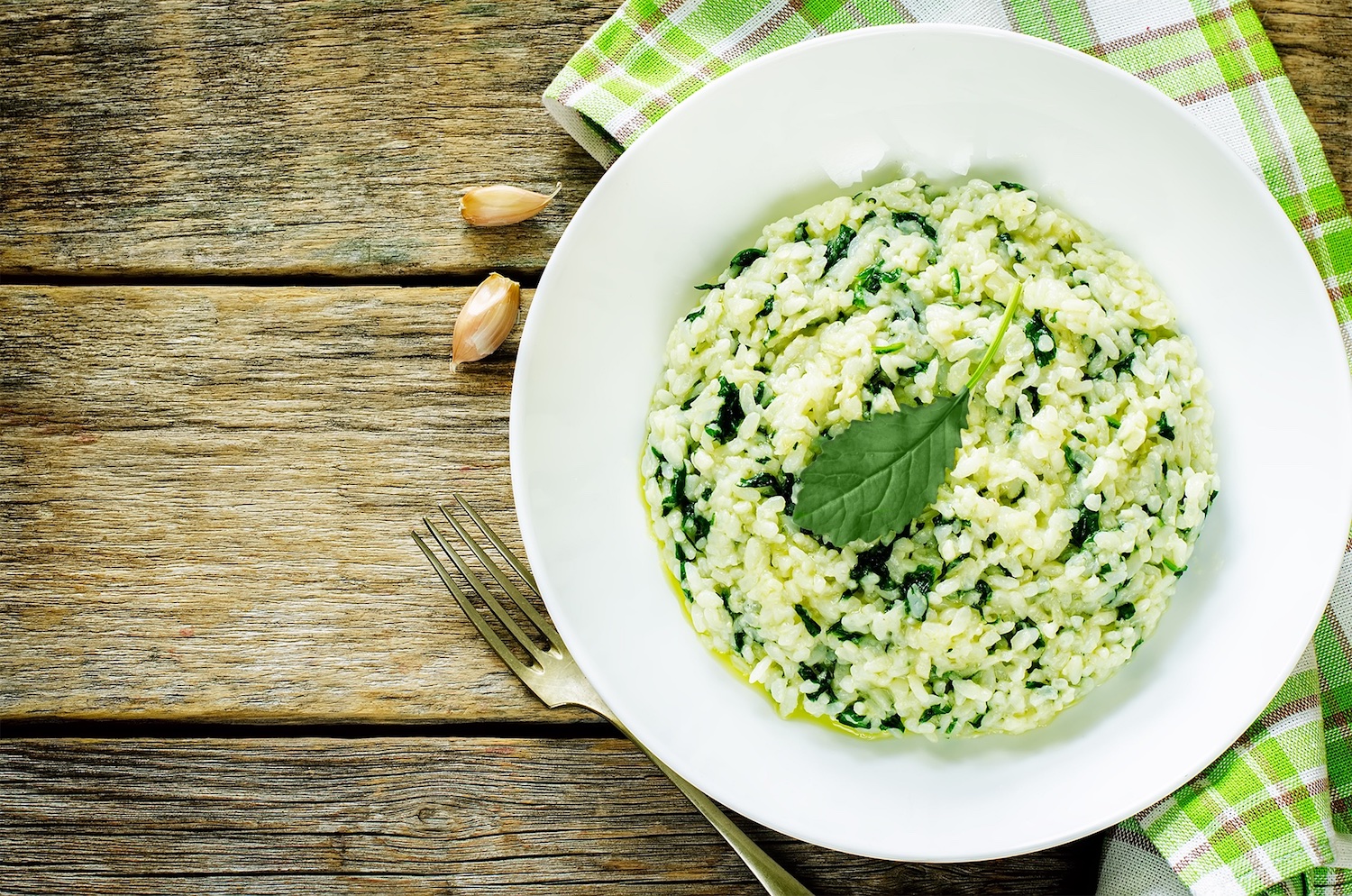 Faire suer l’oignon dans l’huile d’olive. Ajouter le riz et remuer quelques minutes. Mouiller le riz avec le vin blanc...